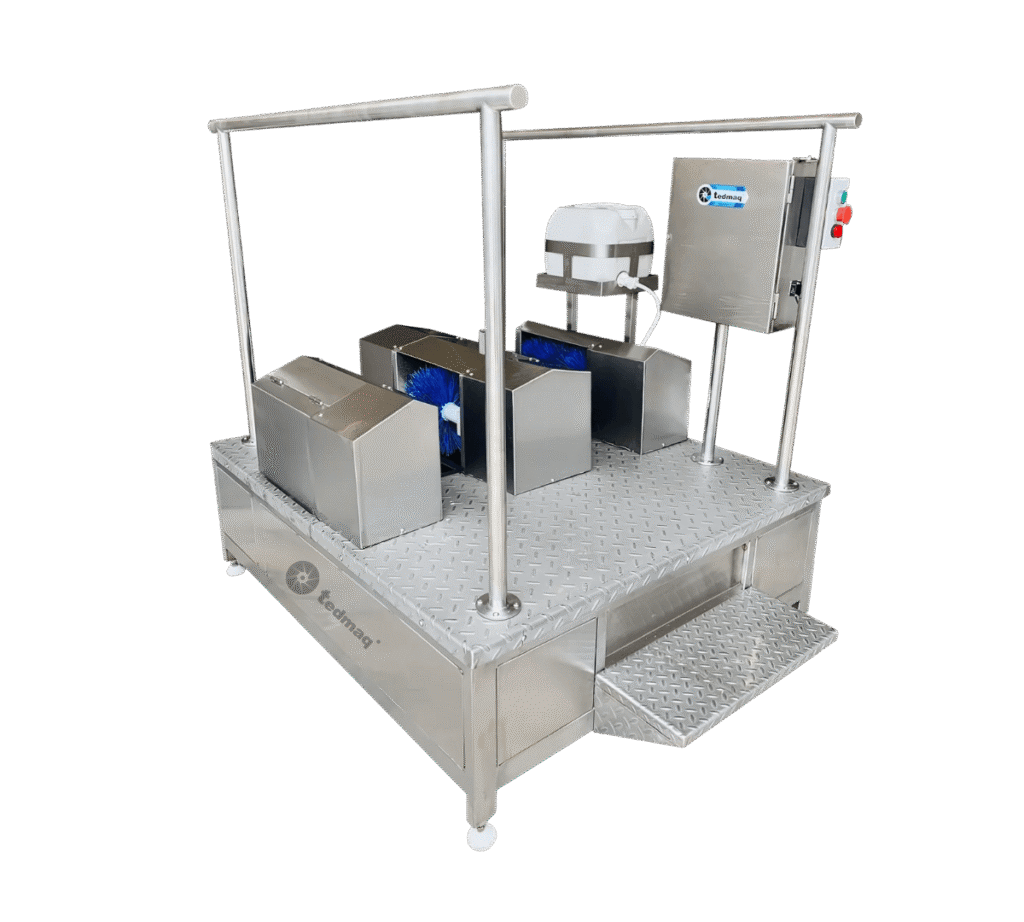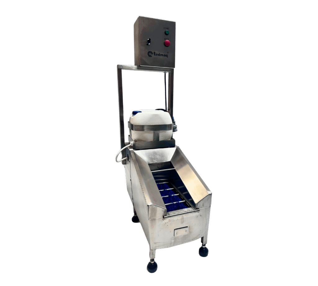 Además, ofrecemos configuraciones personalizadas, desde ajustes en dimensiones hasta sistemas automatizados con integración a otras líneas de producción. Si requieres una solución de higiene adaptada a tu operación, nuestro equipo de ingenieros puede desarrollar equipos a medida para optimizar tu flujo de trabajo y cumplir con los estándares de seguridad e higiene de tu industria