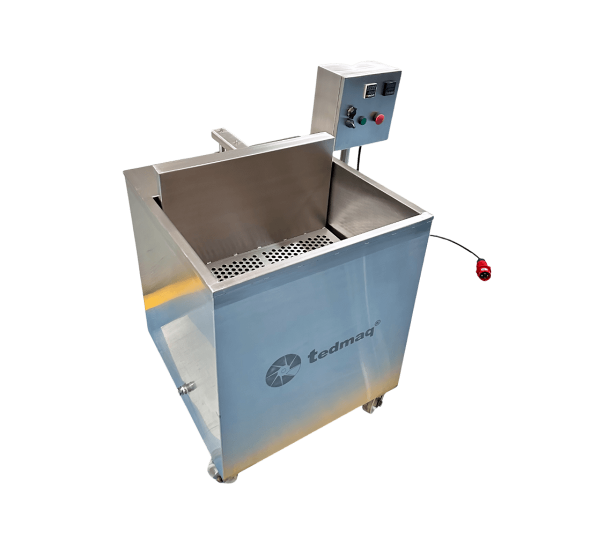 La Cámara de Termoencogido es un equipo diseñado para optimizar el proceso de termoencogido en productos cárnicos y lácteos, garantizando un sellado uniforme y de alta calidad mediante inmersión en agua caliente.