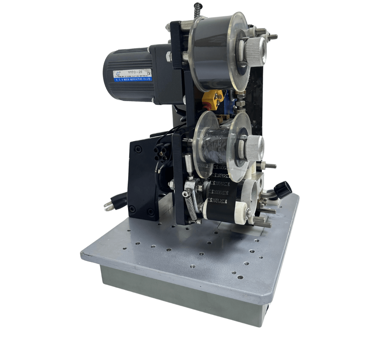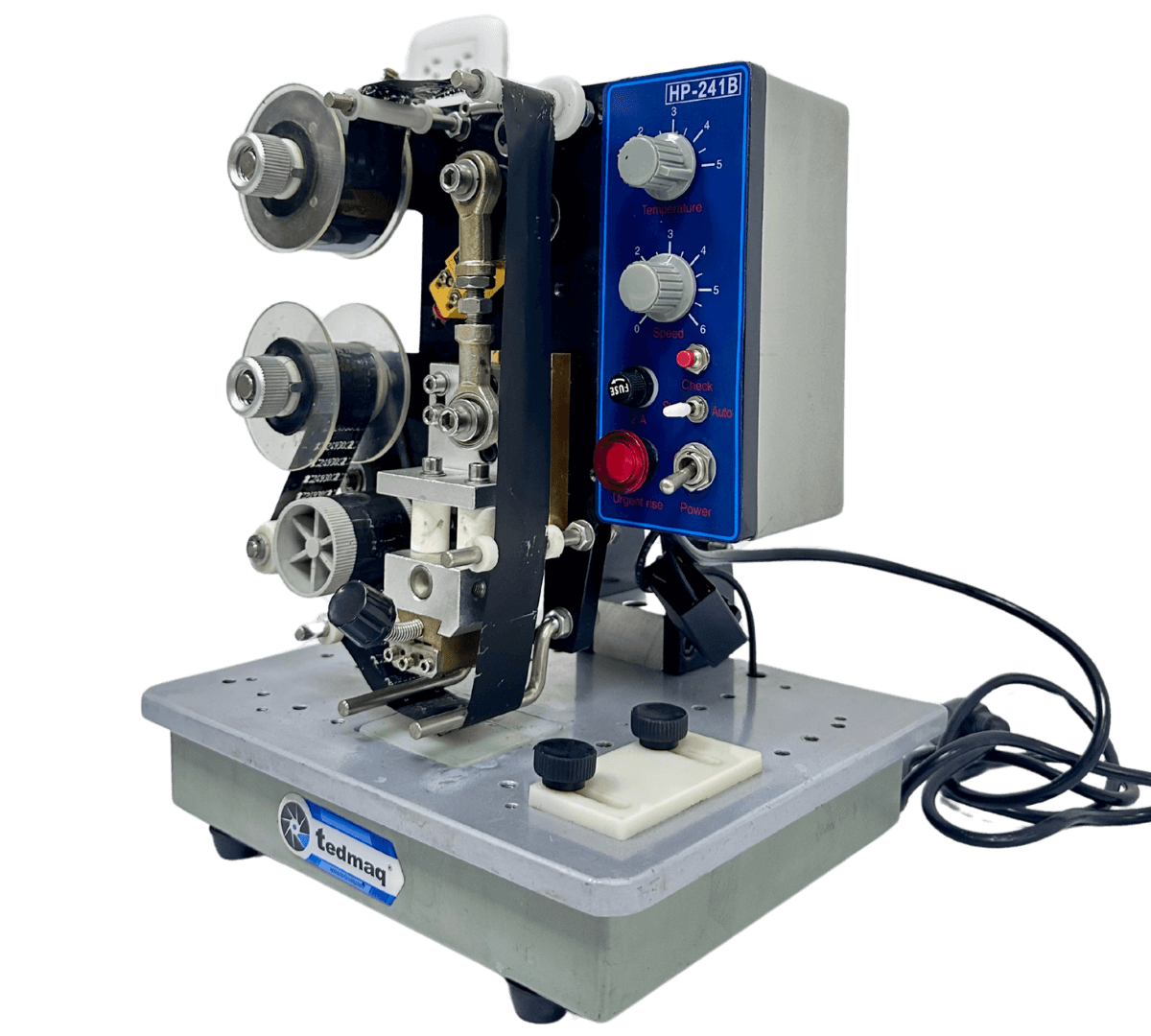 La Codificadora 241 cinta de transferencia térmica es una máquina de sobremesa compacta y fácil de operar, diseñada para imprimir datos variables como fechas de vencimiento, lotes, códigos y más mediante un sistema de cinta de transferencia térmica, que garantiza impresiones limpias, duraderas y de alta calidad.
