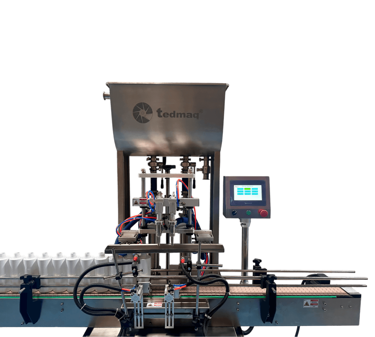 Su configuración multipistón facilita el llenado de grandes volúmenes manteniendo una dosificación uniforme en cada ciclo, reduciendo tiempos de producción y minimizando desperdicios.