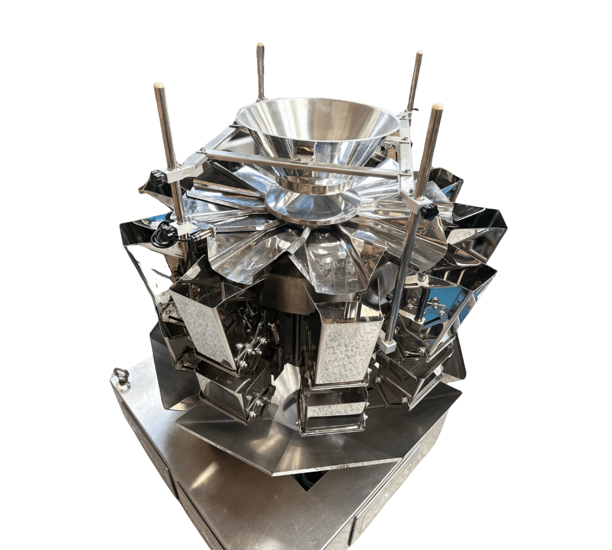 El Multicabezal 10 Pesadores es un equipo compacto, preciso y eficiente, diseñado para automatizar el proceso de pesaje y dosificación en la industria del envasado. Gracias a su tecnología avanzada, permite una distribución uniforme del producto, garantizando exactitud en cada empaque y minimizando desperdicios.
