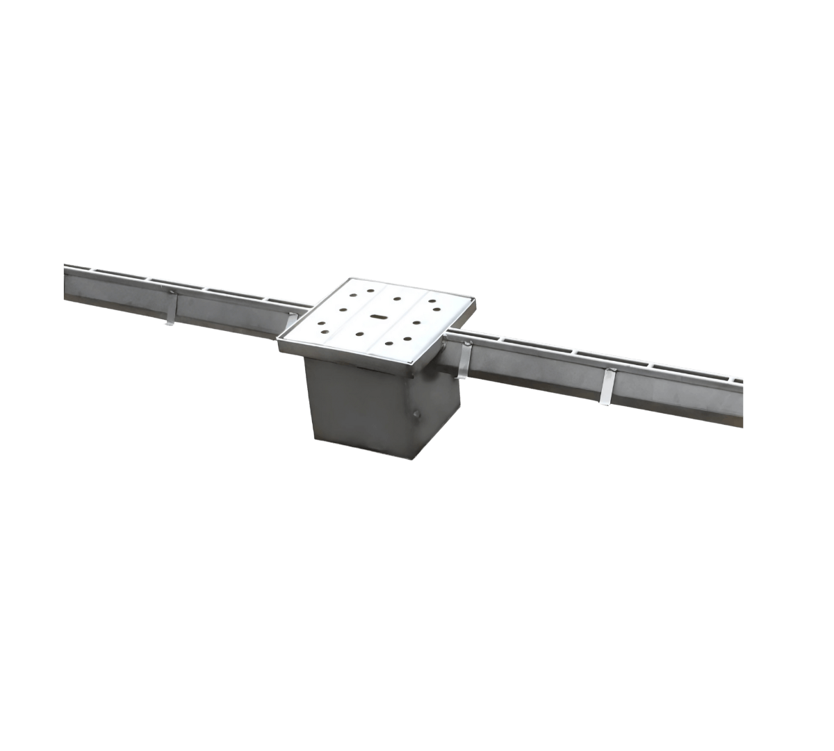 Fabricado en acero inoxidable 100%, este sistema incorpora canalinas con pendiente integrada del 1%, bridas de unión reforzadas y un sumidero con sifón conforme a norma, que asegura la evacuación correcta de líquidos y la prevención de malos olores. El sistema puede configurarse como una canalina única o como varias líneas de drenaje que convergen en un solo sumidero, brindando versatilidad y eficiencia según el diseño de tu planta.