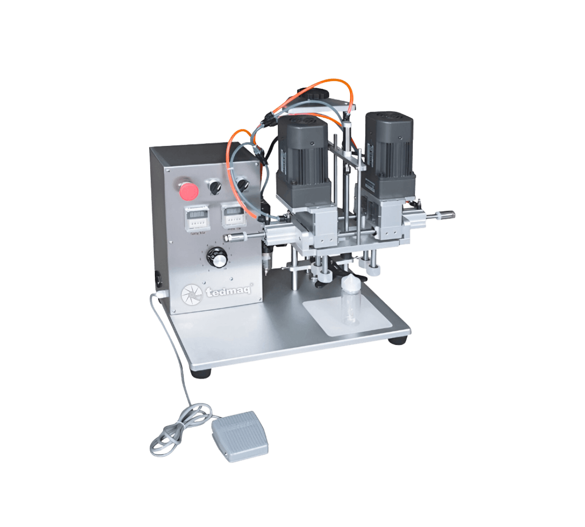 - Ajuste de torque y velocidad: Permite regular la fuerza y la velocidad del roscado, asegurando un sellado firme, uniforme y adaptado a las características de cada presentación sin comprometer el envase.