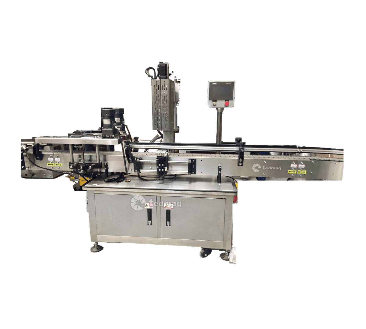 La Tapadora Twist-Off Automática Mueble al Piso es un equipo de alto rendimiento diseñado para el cierre eficiente de botellas de vidrio con tapas metálicas tipo twist-off. Esta máquina opera de forma completamente automática y está equipada con sistema de roscado por servomotor, lo que garantiza una aplicación uniforme, precisa y con torque controlado, reduciendo riesgos de fuga, roturas o mal cerrado.